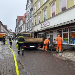 Am Dienstagmittag gegen 12:00 Uhr wurde die Stützpunktfeuerwache zu einem Wasserrohrbruch in der Landgrafenstraße alarmiert. In einem Keller war eine Wasserleitung geplatzt, aus der innerhalb einer Stunde rund 21.000 Liter Wasser austraten.