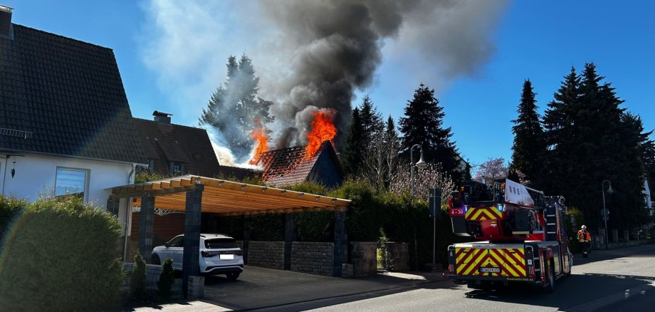 Am Dienstag um 14:22 Uhr wurde die Feuerwehr zu einem Dachstuhlbrand in die Sälzerstraße alarmiert. Beim Eintreffen der Einsatzkräfte stand der Dachstuhl eines Nebengebäudes bereits in Vollbrand. Das Hauptaugenmerk lag zunächst auf der Bekämpfung des Feuers sowie auf der gleichzeitigen Sicherung des angrenzenden Wohnhauses.