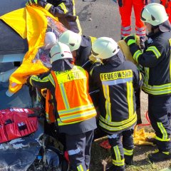 Während die Pkw-Fahrerin schwer verletzt in ihrem Fahrzeug eingeschlossen war, wurde der Unfallgegner eingeklemmt und lebensgefährlich verletzt. Der 26-jährige Enkel des 71-jährigen konnte sich aus eigener Kraft, schwer verletzt aus dem Fahrezeug befreien. Die Feuerwehren aus Reichenbach, Walburg und die Kernstadtwehr waren mit insgesamt 30 Einsatzkräften vor Ort. In einer teils aufwendigen technischen Rettung konnten beide Fahrer gemeinsam von Feuerwehr und Rettungsdienst unter Einsatz von hydraulischem Rettungsgerät aus ihren Fahrzeugen befreit werden.