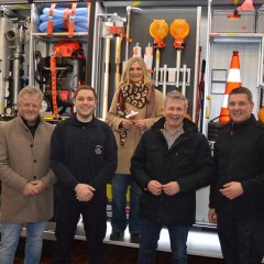 Zum einen durften wir heute Carmen Kraft und Ralf Schaumlöffel-Kraft vom gleichnamigen Bestattungshaus und der Schreinerei begrüßen. Am 17. Oktober dieses Jahres hatte dort ein Großbrand einen erheblichen Sachschaden verursacht. Die Familie Kraft kam mit einem symbolischen Scheck und überreichte der Feuerwehr eine großzügige Spende.