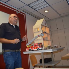 Die Kinder wussten bereits genau, wie sie sich im Brandfall richtig verhalten müssen und welche Schritte notwendig sind. Markus Schröder simulierte gemeinsam mit ihnen einen Notruf, und auch hier zeigte sich: Es sind schon kleine Profis am Werk!