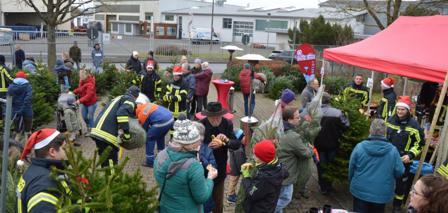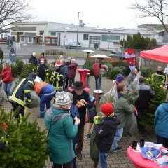 Eigentlich sollte unser Weihnachtsbaumverkauf heute bis 15 Uhr gehen – doch bereits kurz nach 12 Uhr waren alle Bäume restlos ausverkauft! Es gab einen regelrechten Run auf unser Angebot: Schon kurz vor 10 Uhr war der Hof der Feuerwehr komplett mit Autos zugeparkt.